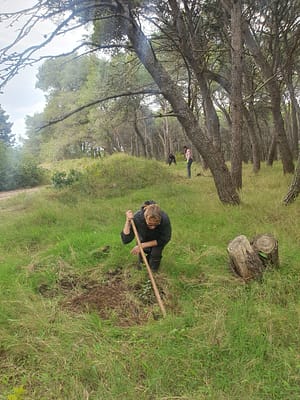- Provedene su volonterske akcije pripreme terena za pošumljavanje koje uključuju uklanjanje korova, šikare i grmlja iz šume alepskog bora, sječu stabala zaraženih potkornjacima, uklanjanje legla borovog žižaka, te njegu mladica pod pokrovom starog rastinja